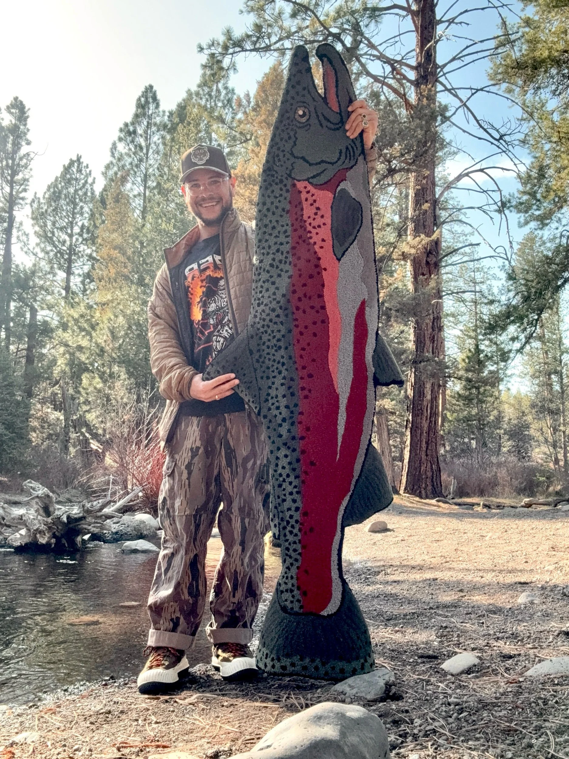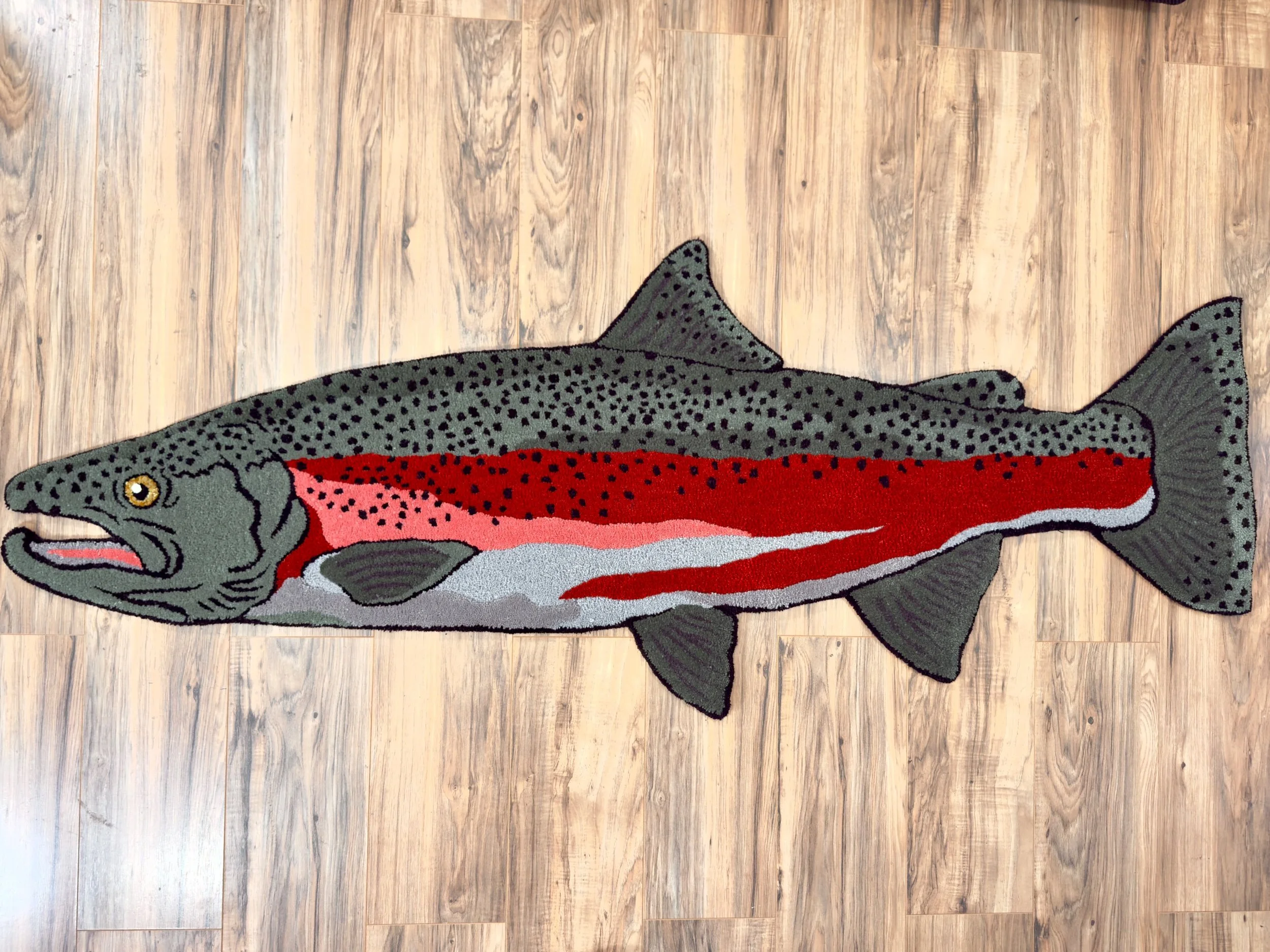 “Fall Run” steelhead rug inspired by the Columbia River system steelhead in New Zealand wool. This steelhead rug is created with eco-sourced New Zealand wool yarn and includes our “Grip-Well” non-slip backing.
